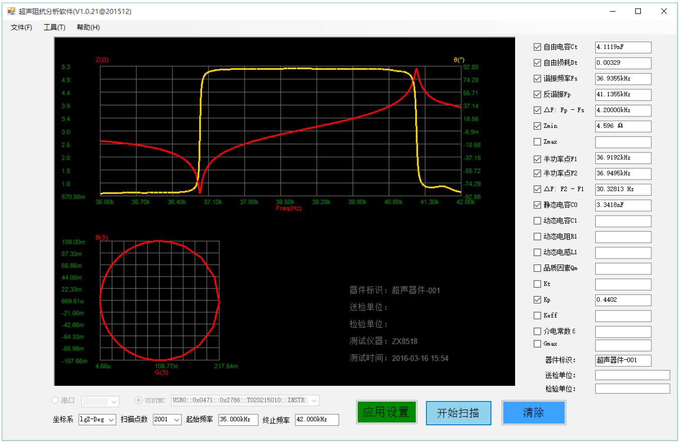 ZX70A/ZX80A系列超聲阻抗分析儀在儀器上就實現掃描圖形,還可以把儀器上屏幕顯示圖形和測試數據直接拷貝到U盤。同時儀器自帶電腦軟件界面,標配版無需另行購買。