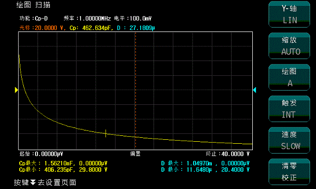 主要用于測試半導體器件PN結的勢壘電容在不同偏壓(V)下的電容量(C)。ZX38A-CV半導體C-V特性測試儀除了可以連接電腦上位機軟件掃描分析功能外,還提供在儀器大屏液晶顯示器上直接顯示C-V掃描曲線分析功能。這樣客戶不再需要為每臺儀器配置一臺電腦。這種方式既保證了測試效率,又降低了測試成本、還方便客戶在生產線上使用。還可以把儀器屏幕上顯示圖形和測試數據直接拷貝到U盤。